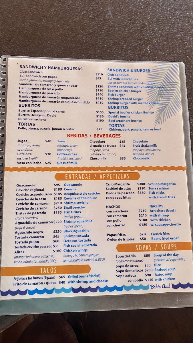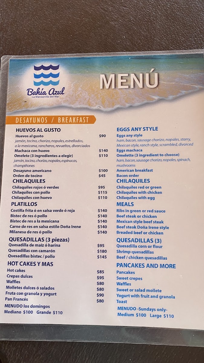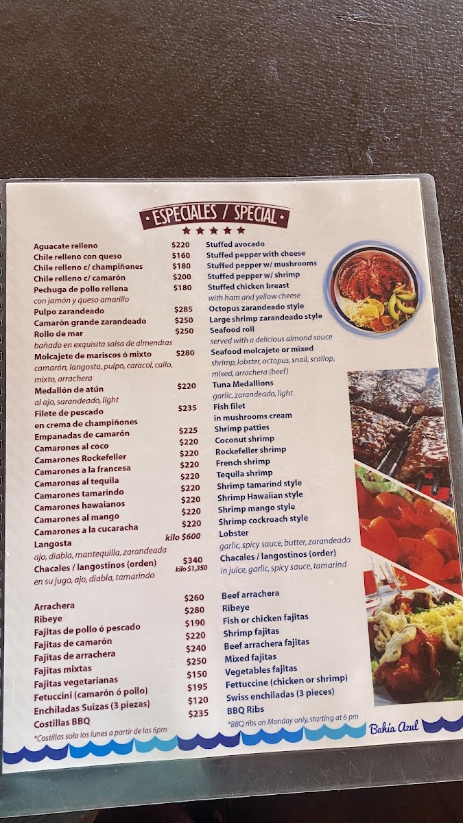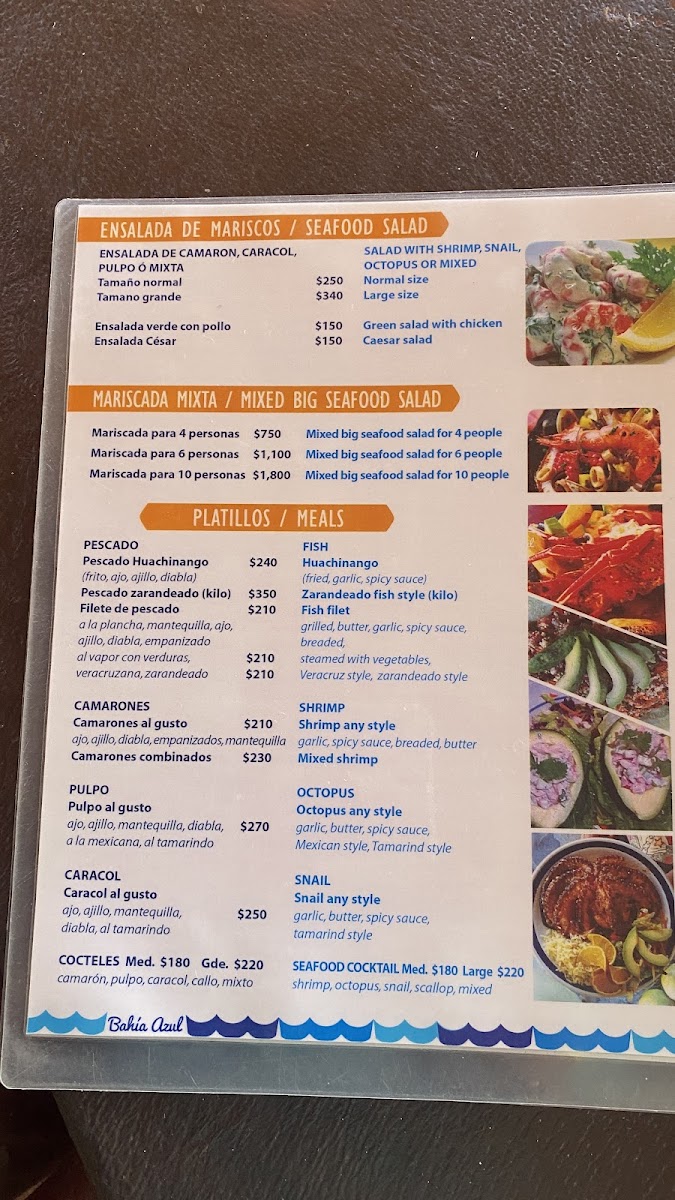 Bahia Azul Menu